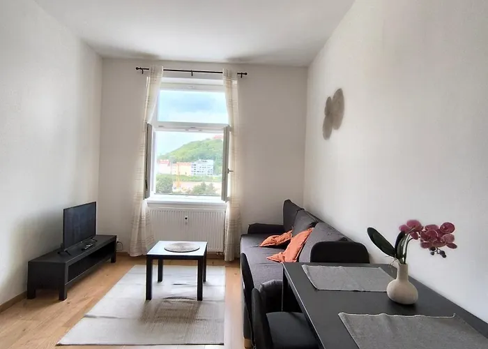 Dieses Apartment liegt in einer Entfernung von rund 10 Fahrminuten vom Wenzelsplatz. Die Tschechische Nationalbibliothek Klementinum ist in einer 3 km Entfernung von diesem 50 m² großen Apartment gelegen.
